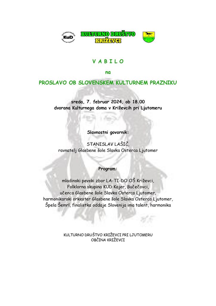 VABILO NA PROSLAVO OB KULTURNEM PRAZNIKU