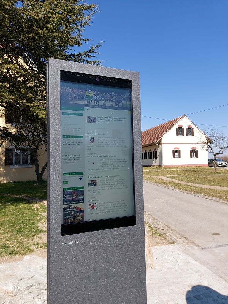 Na digitalni turistično obvestili zaslon v Križevcih so naložene vsebine iz spletne strani občine Križevci. V prihodnje se bodo namestile še turistične informacije povezane z lokalno ponudbo v občini.